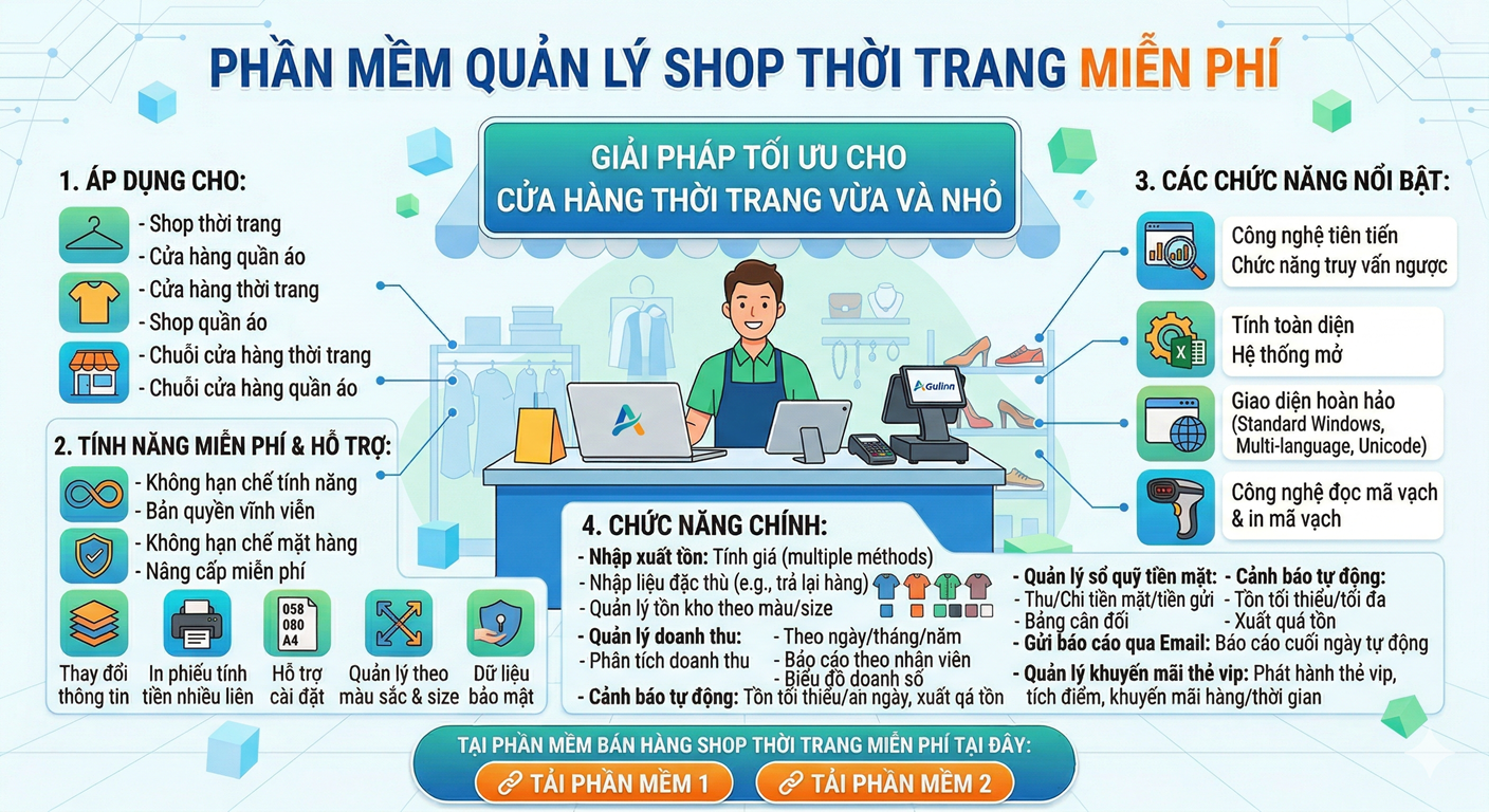 Trong thời đại kinh doanh hiện đại, việc sử dụng phần mềm quản lý shop thời trang miễn phí đang trở thành xu hướng tất yếu giúp các chủ shop tối ưu vận hành, tiết kiệm chi phí và gia tăng lợi nhuận. Đặc biệt với các cửa hàng vừa và nhỏ, việc lựa chọn một phần mềm miễn phí nhưng đầy đủ tính năng là giải pháp vô cùng hiệu quả.
